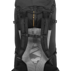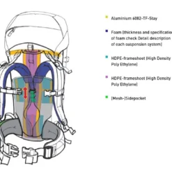 L’armature dorsale du Specialist 75 est composée du système de suspension Expedition de Bach, qui offre un très grand confort de portage. Le dos est composé d’un filet tendu et d’une mousse à pores ouverts qui apportent une bonne ventilation et confort optimum, ainsi qu’une plaque dorsale en HDPE (polyéthylène haute densité). Deux rails courbés en aluminium, placés sur toute la hauteur du sac à dos, assurent un maintien de l’ensemble. La hauteur du dos est réglable afin de s’adapter à chacun. La ceinture est composée de plusieurs couches de mousses EVA, d’une mousse PU à pores ouverts et elle est rigidifiée avec un panneau en HDPE.