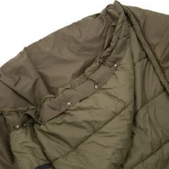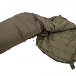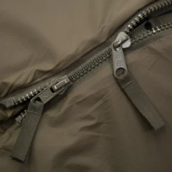 Fermeture éclair sur le côté gauche du sac de couchage avec zip double curseur, permettant de l’ouvrir par le bas ou le haut. La construction trapézoïdale pour plus de confort au niveau des pieds.