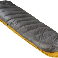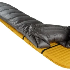 Construction en forme de H. Qualité des matériaux : duvet d’oie polonais 850 cuin, tissu Pertex Quantum léger et respirant. Finitions soignées. Clip pour serrer le sac de couchage autour du cou. Bon ratio isolation/légèreté.