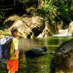 Il peut se porter de différentes manières, les bretelles et les sangles des hanches sont amovibles. Les fermetures éclair sont étanches et le sac à dos à une imperméabilité de 1500 millimètres.