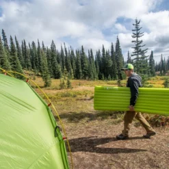 - Légèreté : les matériaux utilisés (polyester 20 deniers recylcé) et la forme momie (plus étroite au niveau des pieds) permettent à Exped de proposer un matelas très léger : 445 grammes, ce qui est une performance au regard du confort qu’il procure et des performances thermiques.
