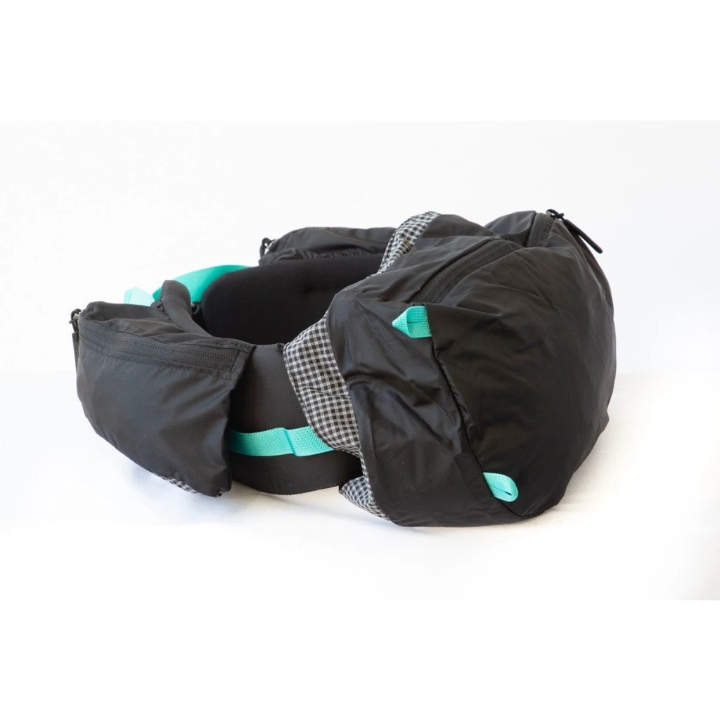 Il est constitué d’un grand volume accessible par le haut grâce à une ouverture/fermeture par enroulement. Une fermeture éclair verticale sur toute la hauteur permet également un accès rapide par le devant. Les nombreuses lanières permettent de bien sangler le sac à dos. Au niveau de la ceinture se trouvent deux poches zippées. Sur les côtés, deux grandes poches généreuses permettent de ranger deux gourdes chacune et une grande poche en mesh extensible est placée sur le devant. Le capot peut être ramené sur le torse pour une utilisation frontale pour un accés à porter de mains. Il peut aussi être combiné avec la ceinture amovible pour obtenir un petit sac, très pratique pour se faire une balade une fois le bivouac installé !