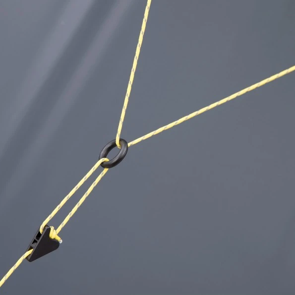 - un dispositif de rĂ©glage sur la partie basse du double-toit Ă l’arrière de la tente,