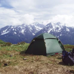 La forme dôme rend l’Allak totalement autoportante : les 3 arceaux se croisent en 3 endroits, de sorte que cette tente est suffisamment solide pour une utilisation en situation exposée : conditions difficiles, haute-montagne…