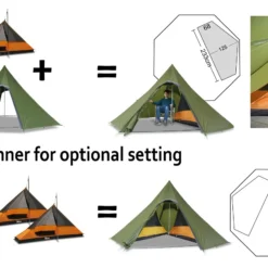 Polyvalent : vous pouvez ne monter que le double-toit, pour obtenir une version très légère de votre abri, ou le monter avec la chambre intérieure. La chambre intérieure est composée sur 1/3 d’un panneau plein et sur les 2/3 d’un tissu mesh léger limitant la condensation. La chambre intérieure couvre la superficie du tipi tout en laissant une légère abside laissant de la place pour ranger votre matériel et pour poser un réchaud de camping.