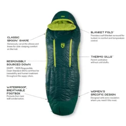 Le Disco Women’s 15 de Nemo est un sac de couchage confortable, conçu pour un usage 3 saisons, offrant de l’espace. Sa forme particulière en cuillère permet d’obtenir plus d’espace au niveau des coudes et des genoux par rapport à un sac de couchage de forme momie. Ce modèle répond au constat que 70% des personnes préfèrent dormir sur le côté.
