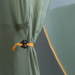 Elle est composée d’un sol et d’un double-toit qui protège des intempéries (pluie, vent) et d’une chambre intérieure avec des panneaux en « tissu plein » et sur la partie supérieure en tissu mesh. Ce tissu moustiquaire à très fines mailles protège des insectes volants et rampants, allège le poids global de la tente et favorise la circulation de l’air, donc limite les effets de la condensation.
