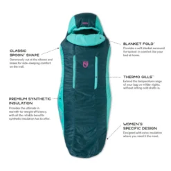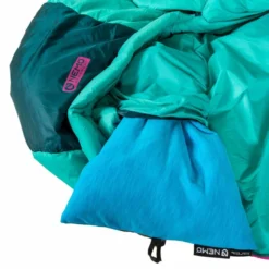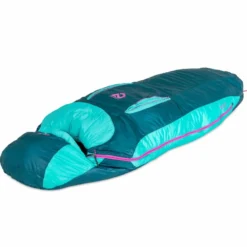Le sac de couchage Forte Women’s 35 de Nemo dispose d’une isolation synthétique en Primaloft Rise à 80% recyclé. Sa forme particulière en cuillère permet d’obtenir plus d’espace au niveau des coudes et des genoux par rapport à un sac de couchage de forme momie. Ce modèle répond au constat que 70% des personnes préfèrent dormir sur le côté.