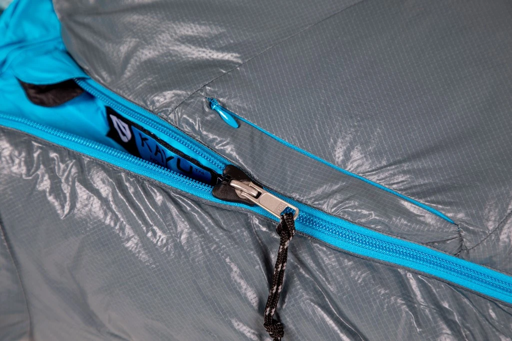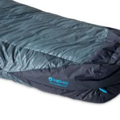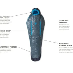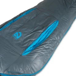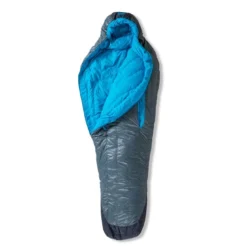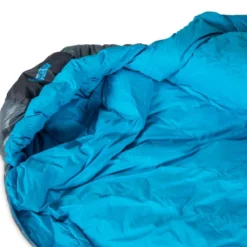 Sac de couchage sarcophage 1°C en duvet de canard 800 cuin hydrophobe équipé d’ouvertures régulant la température. Modèle femme.