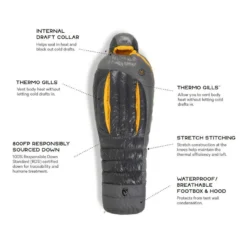 Le Sonic -20 de Nemo est un sac de couchage très performant pour lutter contre le froid. Il est prévu pour une utilisation 4 saisons et permet de dormir jusqu’à -18°C. Les deux ouvertures zippées permettent de réguler la température à l’intérieur du sac de couchage lorsqu’il fait plus doux, sans pour autant laisser rentrer l’air froid. Il est garni d’un duvet 800 cuin avec traitement hydrophobe.