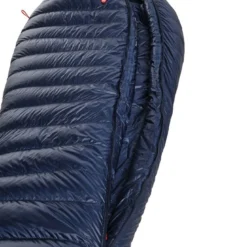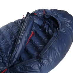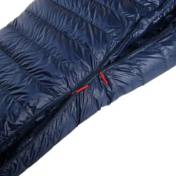 L’enveloppe est réalisée avec un tissu ultraléger et respirant, du Toray Airtastic SLF15 DWR, formant un cloisonnement en Z. Les parois inclinées entre les chambres permettent une meilleure isolation par rapport une construction en H classique. La fermeture éclair YKK est très fluide et elle ne se coince pas au contact du l’enveloppe du sac de couchage.