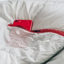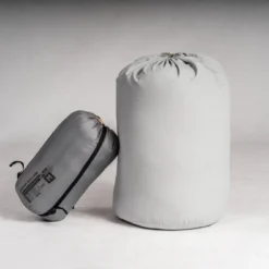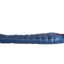 En complément du duvet, il dispose sur le pourtour de la capuche d’une isolation en synthétique Primaloft. Celle-ci résistant mieux à l’humidité, elle est parfaitement adaptée pour l’humidité expirée durant la nuit et elle apporte en plus, du confort au niveau du cordon de serrage. Son tissu est un Pertex Quantum Ripstop traité DWR pour l’humidité.