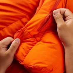 Le sac de couchage Andes Infinium 1000 de Rab a été optimisé pour proposer un excellent ratio chaleur/poids/encombrement. Il est garni de 1000 grammes de duvet d’oie européen hydrophobe certifié RDS de 800 cuin. La marque ne communique pas de température de confort pour ses sacs de couchage grand froid, mais de notre expérience, celle-ci est d’environ -16/-18°C.