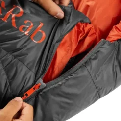 L’Ascent 500 de Rab est un sac de couchage garni avec un duvet de canard européen hydrophobe certifié RDS de 650 cuin. Il contient 500 grammes de duvet pour une température de confort de 1°C. Il est doté d’une fermeture éclair longue à double curseur, avec un rabat anti-froid, ainsi que d’une collerette avec cordon de serrage, d’une poche interne zippée et d’une capuche enveloppante avec un cordon de serrage. Il est disponible en taille standard (taille R) ou long (taille L) pour les personnes mesurant plus de 185 centimètres.