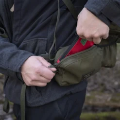 La poche est fermée par un zip double curseur facile à utiliser avec des gants. Elle est fabriquée avec du Cordura 1000 deniers enduit de PUR ce qui lui permet d’être résistante à l’abrasion et à l’usure. Le bas de la poche est équipée d’un anneau de drainage en métal.