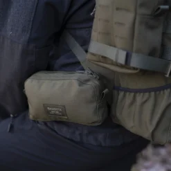 L’intérieur de la poche horizontale n’est pas compartimenté, ce qui permet un rangement facile et simple. A l’arrière le système Molle permet de fixer la poche horizontale aux ceintures d’équipements, aux ceintures abdominales des sacs à dos Jääkäri de Savotta.