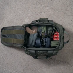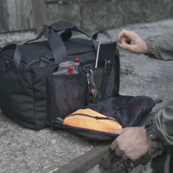 Les trois modèles 30L, 50L et 80L partagent les mêmes éléments de conception de base : tissu robuste et durable en Cordura 1000 deniers, poignées de transport enveloppantes, bandoulières amovibles, points de fixation, et conception pour une organisation interne flexible. Construit avec des matériaux et des méthodes de qualité militaire.