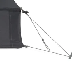 Cette ailes déployées permet également d’éliminer au maximum le risque de condensation avec un système de ventilation efficace. La tente dispose d’une ventilation haute et basse, assurée par le dessous des portes extérieures afin que l’air circule bien. Suivant les conditions météorologiques, elles peuvent être ouvertes ou fermées.
