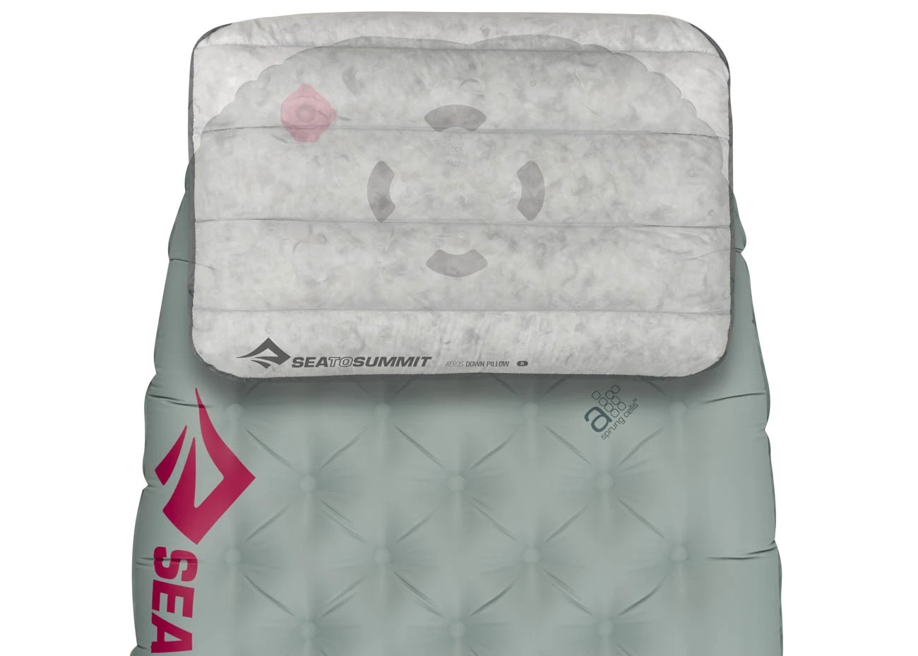 Au niveau de la tête, l’attache PillowLock permet de fixer un oreiller Aeros Sea to Summit à votre matelas pour le tenir en place toute la nuit. (Oreiller vendu séparément).