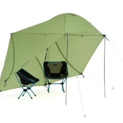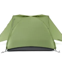 Grâce à sa structure en dôme autoportante et son arceau supérieur Tension Ridge avec une conception Wingspan (ailes déployées), la Telos TR2 Plus dispose d’un grand volume intérieur avec des parois verticales. Ses portes sont hautes et larges, laissant place à un habitacle très généreux une fois entré. Au sol, elle mesure 134 centimètres dans sa plus grande largeur et 109 centimètres au niveau des pieds.