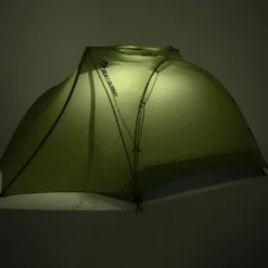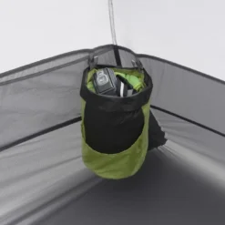 La housse de rangement décomposé en plusieurs compartiments permet de partager le poids entres les personnes. Elle sert également de poche de rangement dans la tente et de « lightbar » plafonnière (à combiner avec sa lampe).