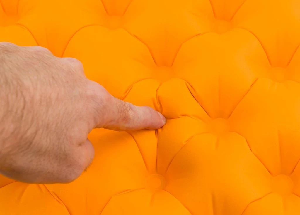 - Sur le dessus, nylon 40 deniers : bon compromis entre poids et durabilité.Revêtement PU pour réduire le glissement et éliminer le bruit de plastique et renforcer le matelas contre les crevaisons. Agréable au touché.