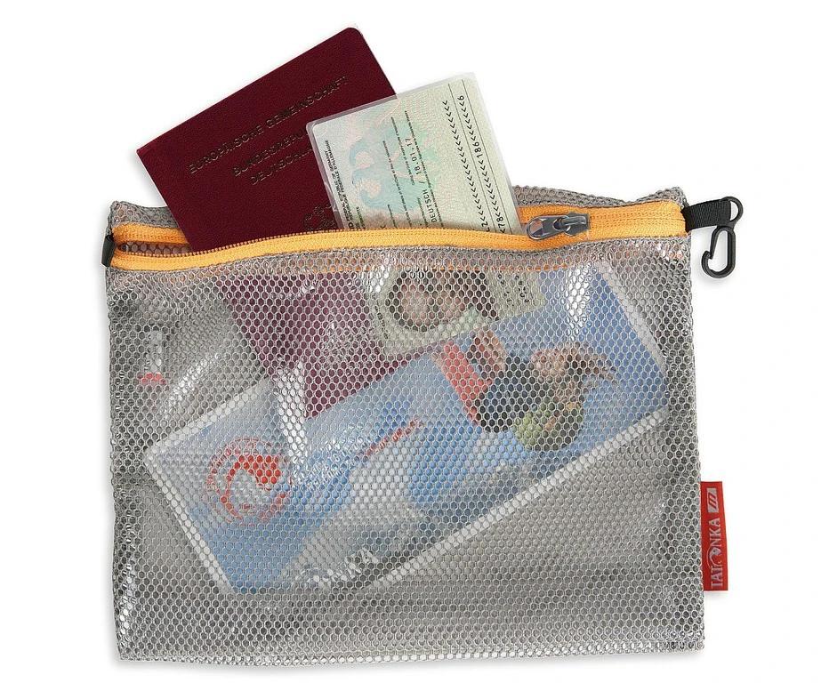 La Dodger de Tatonka est une trousse transparente en polyester mesh (aspect filet) avec une feuille de polyuréthane à l’intérieur pour la rendre étanche.