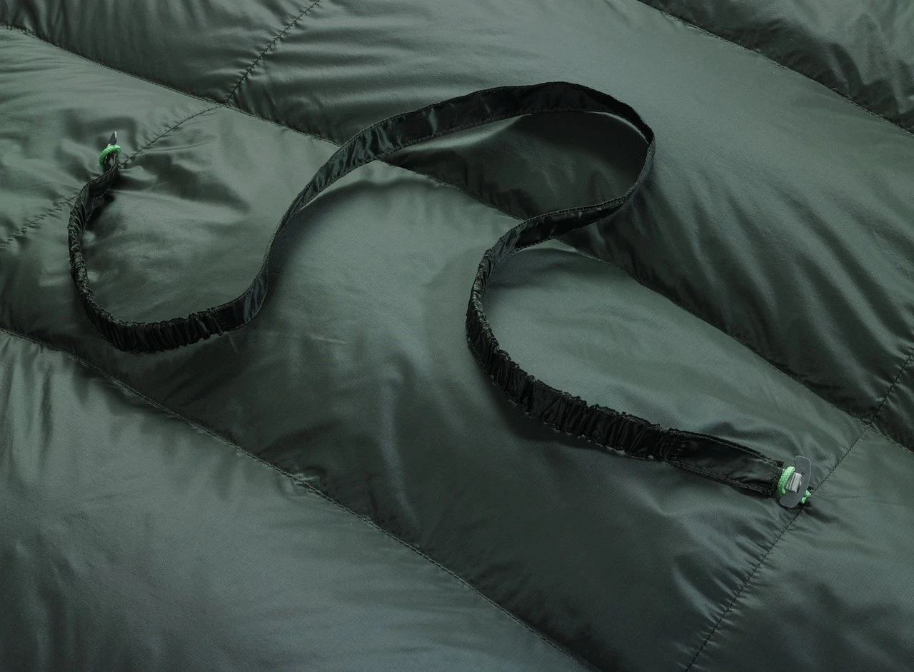 - Connecteurs SynergyLink : sangles amovibles qui permettent de connecter un matelas et le sac de couchage pour minimiser les pertes de chaleur. L’avantage de ce dispositif, c’est que vous restez bien bordé toute la nuit et que vous ne risquez pas de glisser en dehors du matelas.