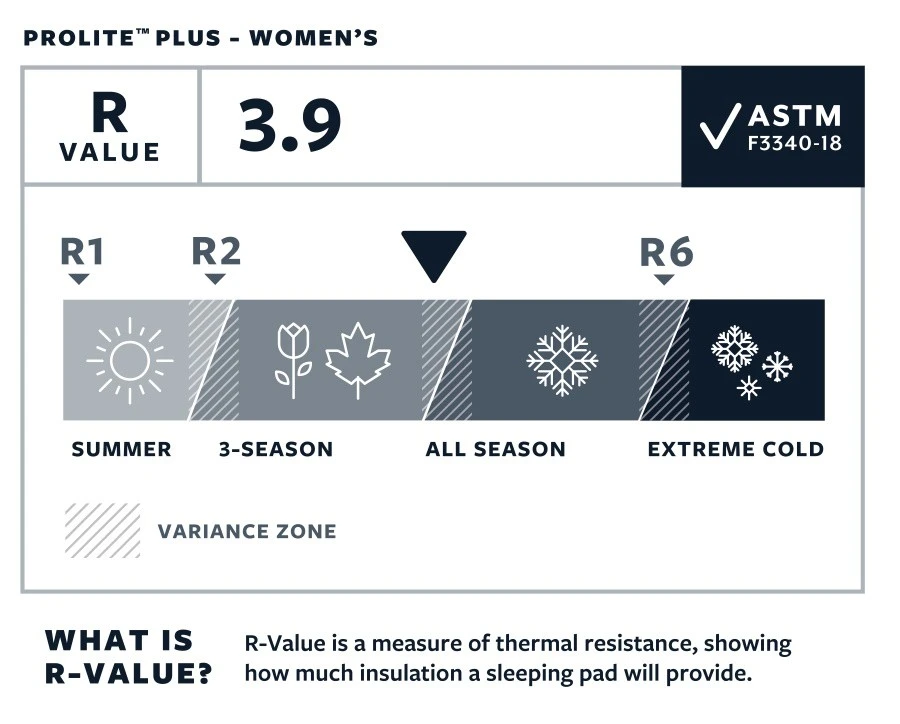 LĂ©ger et compact, le Prolite Plus Women’s contient une mousse alvĂ©olĂ©e confortable. Il dispose d’une Ă©paisseur de 3,8 centimètres. C’est un matelas 3 saisons bien isolĂ©, il peut ĂŞtre utilisĂ© jusqu’au dĂ©but de l’hiver, voir un peu plus. Son R-Value est de 3.9 avec la nouvelle norme ASTM F3340-18.Â